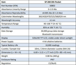SP-200 OXIPOCKET menggabungkan fungsi kolorimeter all-in-one yang unik. Alat ini dirancang khusus untuk mengukur semua biocida oksidatif primer dan disinfektan yang umum digunakan di pasar munisipal, domestik, dan industri. SP-200 menawarkan pengujian kolorimetrik untuk biocida oksidatif, disinfektan, serta amonia. OXIPOCKET menghilangkan kebutuhan akan kolorimeter multi-komponen yang mahal dan independen. Perangkat handheld ini juga memiliki fluorometer terintegrasi yang memungkinkan metode pembacaan langsung untuk konsentrasi Klorin Dioksida dan Pemutih. SP-200 membaca dalam rentang konsentrasi tinggi dan rendah sebagai massa/massa, memungkinkan pengguna menguji sampel langsung untuk konsentrasi yang tepat tanpa memerlukan reagen. Selain itu, perangkat ini dilengkapi dengan transfer log data nirkabel, pembaruan firmware, dan kustomisasi layar melalui aplikasi uPyxis®.